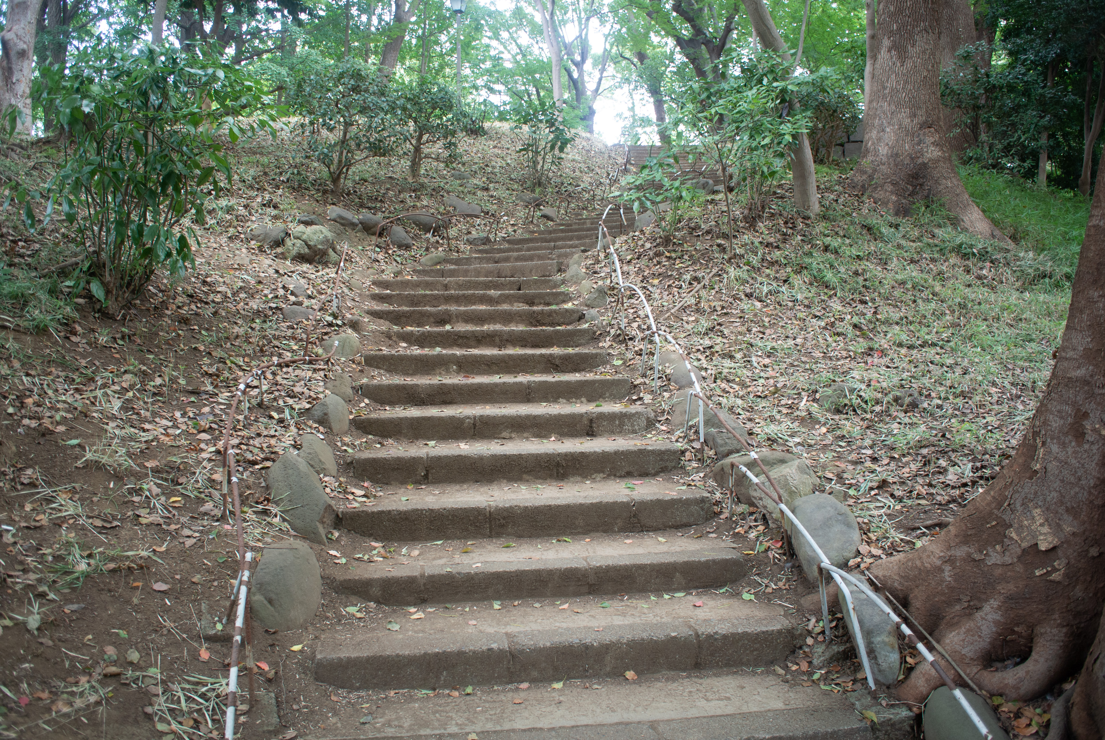 The entrance to the park is beautiful with a couple of water features, some mature trees with sitting areas and lockers for valuables if you do not want to carry them throughout the park. The way sitting areas are done in Japan is very interesting. On a flat surface, like the stone work around a tree, there are a number of evenly spaced raised dividers creating separated seats without actually making purpose built benches or seats. It blends wonderfully with the environment.