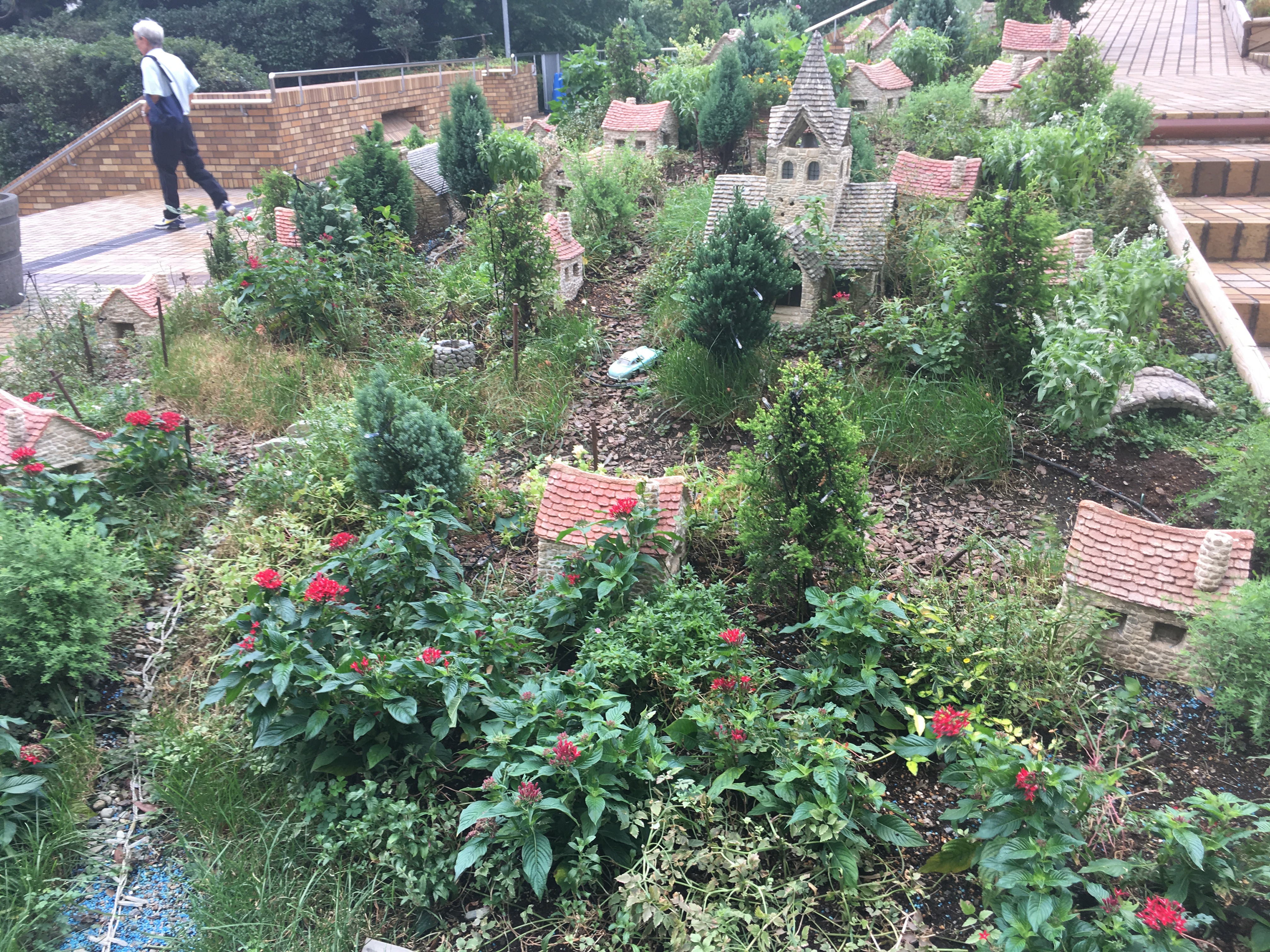 After browsing through the mall and finding nothing souvenir like I went outside and found a little hill village along the side of the building. It was very cute and I sat along it and finished my breakfast. It was very windy and I nearly lost my food a few times.